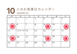 10月の営業日をお知らせします