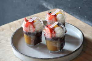 このわ山のあんみつ(うきはの山茶ほうじ茶黒蜜仕立て)・さくら餅(伊豆特産 大島桜)・うぐいす餅・よもぎ餅・菓乃実(レモンの葛寄せ)・いちご大福(JA糟屋 博多あまおう)・粒あんおはぎ・きなこのおはぎ・麩の餅・全粒粉のどら焼き(自家栽培 古代小麦)・黒糖わらび餅・塩豆大福・石畳(ishidatami) ・抹茶わらび餅・みたらし団子・最中・お手詰め最中